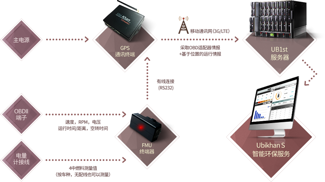 通过管制用GPS 通讯终端器,收集,聚合OBDⅡ模块数据