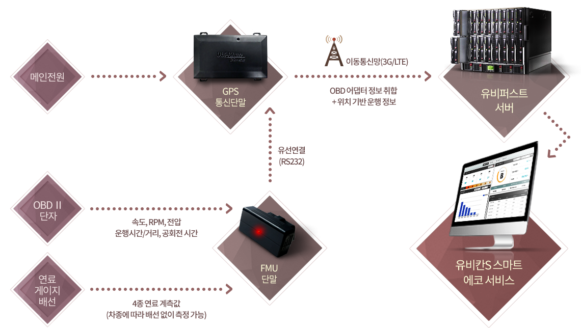 관제용 GPS 통신 단말을 통해 OBDⅡ 모듈 데이터를 수집·취합